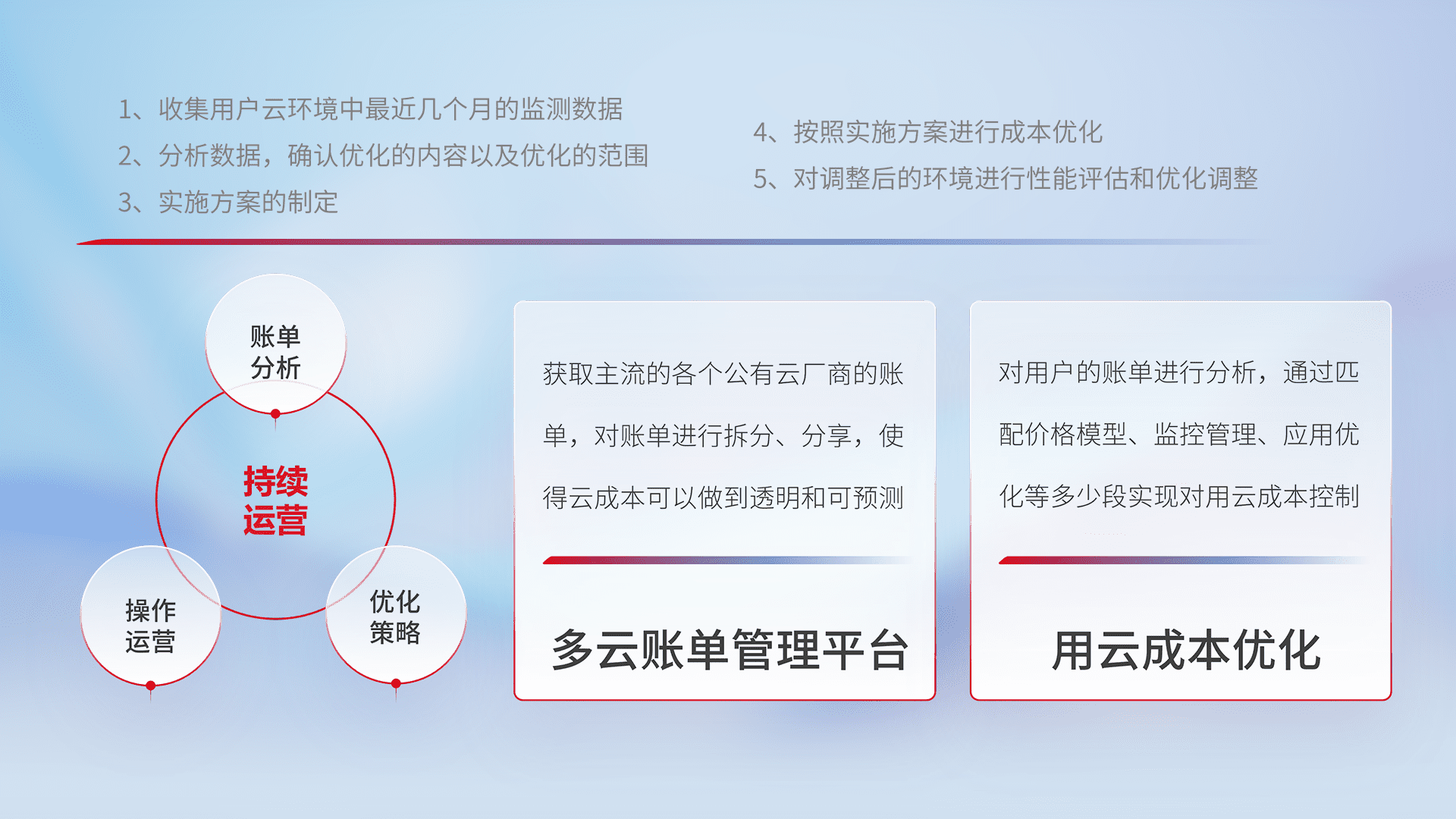 监控业务系统资源开销,,对资源的消耗精确计量,,,实现费用的透明化管理,,不断提升资源使用率,,调整资源购买方式,,,,降低资源费用成本,,用云成本可预测、、、用云费用可优化,,,云资源配额有据可依。。